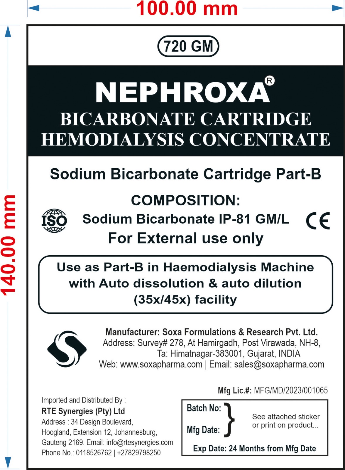 NEPHROXA 720g sodium Bicarbonate Cartridge PART B