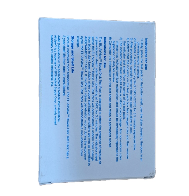 Eu airview™ bowie-dick test pack is designed with premium quality materials and precision engineering, making it an ideal solution for modern medical, personal, or institutional use. Designed to meet the needs of healthcare environments with patient and caregiver usability in mind.