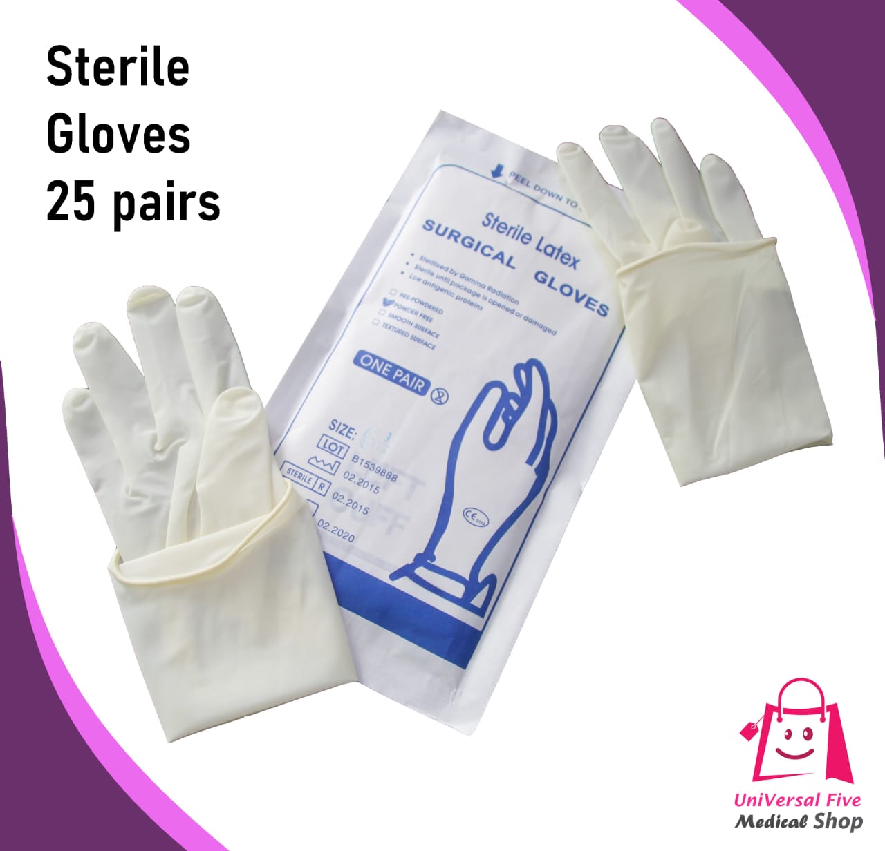 Surgeon Surgical sterile Gloves for Theatre 50 Pairs In Box Sizes are 6.5 ,7,8